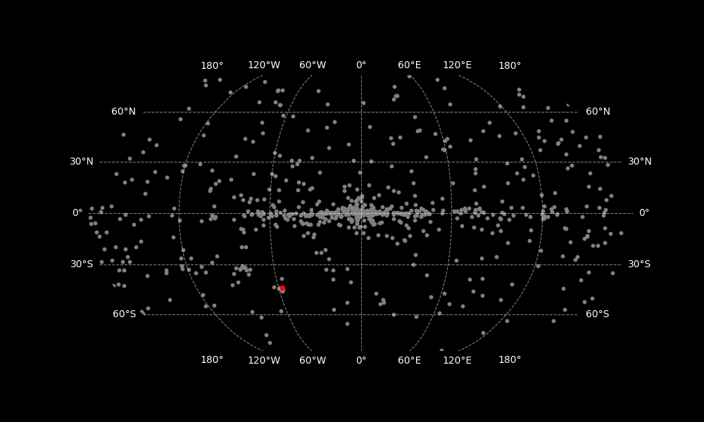 Galactic Latitude: -43.44199° Galactic Longitude: -57.36974°